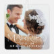 Modern and elegant keepsake wedding photo ornament design features "Married" in unique white serif type over your full bleed wedding photo. Personalise the custom "Mr. and Mrs." text with the married last name and wedding date. Photo tip: crop photo to square format before uploading it to the design template.