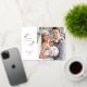 This elegant newlyweds Christmas card features a modern design and large photo. A delicate gold foil wreath circles the phrase "Married Christmas" written in grey against a white background. Customise with your names, the holiday year, and your favourite wedding photo. On the back, you can add a personal message to recipients.