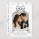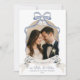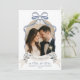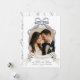 Celebrate the joy of your first holiday season together with this elegant First Christmas wedding photo card. Featuring a custom couple’s portrait framed with watercolor ribbon accents, festive holly, and soft winter florals, this personalised Christmas card for newlyweds is the perfect keepsake to share your love with family and friends. The design highlights your wedding photo, complemented by a classic script font announcing “First Christmas as Mr. & Mrs.”, along with your names elegantly printed below.
