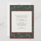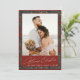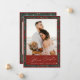 Elegant traditional newlywed couple photo Christmas holiday card with red and green winter botanical pattern.
