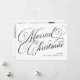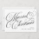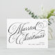 This simple, black and white holiday card for the newlyweds says "Married Christmas" in classic, elegant calligraphy script with decorative swirls and swashes. The back of the card features a photo grid with room for three pictures, plus a personal message to family and friends. A traditional look that's updated with a modern sensibility, this card is the perfect way to show off your wedding photos while wishing loved ones a Merry Christmas.