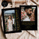 Married Christmas Photo Newlyweds Black & Gold Holiday Card
