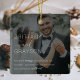 Married newlyweds christmas ornament featuring a photo of the couple with a dark black overlay, your names, and a modern marriage love quote.