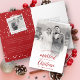 This modern and simple holiday/christmas wedding announcement card features the word 'Married Little Christmas' in trendy calligraphy script and festive red sans serif mix stacked typography overlaying a full bleed photo.