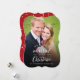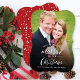 This modern and simple holiday/christmas wedding announcement card features the word 'Married Little Christmas' in trendy calligraphy script and sans serif mix stacked typography overlaying a full bleed photo.