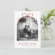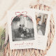 Celebrate your first holiday season as newlyweds with these elegant Christmas photo cards. The design highlights an arch-shaped photo topped with a whimsical hand-drawn red bow, with ‘married + merry’ in modern script lettering below. A black-and-white filter is shown on the sample photo, but you can easily customise or remove it in the Design Tool. The back features a second photo and space for your custom message. View the collection linked on this page for coordinating items or browse our store for more Christmas photo cards.