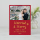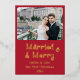 Our First Christmas Married and Merry photo custom greeting card with gold foil in Christmas red is the perfect way to celebrate the newlyweds' first Christmas, with its clean and modern font and places for two photos, with classic holiday colours. The playful "Married and Merry" message is a thoughtful and sentimental way to celebrate their first holiday season together. This card is part of the Married and Merry collection, which includes pillows, ornaments, and more!
