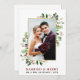 Elegant Watercolor Winter Greenery Married & Merry Wedding Photo Newlywed Holiday Card includes eucalyptus leaves and red holly berries. Gold Frame.