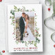 Elegant Watercolor Winter Greenery Married & Merry Wedding Photo Newlywed Holiday Card includes eucalyptus leaves and red holly berries.