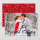 Married & Merry Wedding Photo Christmas Card - Black Script, Red Snow Back