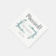 Customisable napkins are perfect for wedding receptions and other special events. Features centred blue floral modern frame with three text fields in modern fonts.