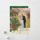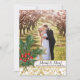 An elegant yet simple Christmas card design for the newly married. Your vertical photograph is easily changed out using the template field provided. The text, "Married and Merry!" is placed for you with a text field below it for your own message or use ours. On the reverse side is a full lace like damask image in a gold glitter (faux graphically designed, no actual glitter used) with the hand painted holly berry cluster of leaves and berries tipped with golden shimmer sparkle and your Christmas card text and names. The background color on either side can easily be changed using the "customize" it field and selecting a color.
