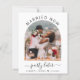 Budget-friendly elopement or smaller wedding announcement to inform family and friends that your wedding plans changed and you eloped or reduced the number of guests at your wedding to a small intimate group, and that you will host a celebration party in the future. The front features your photo in an arched frame and "Married Now, Party Later" in a mix of modern typography and trendy script. Under your photo you can add your first names and wedding date. On the reverse you can personalise your message in more detail and add your names in a signature-like script.