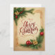 The card is accompanied by a high-quality envelope, matching the festive theme. It features a subtle pattern of snowflakes or ornaments, adding an extra touch of elegance. The envelope is sealed with a Christmas-themed sticker, completing the presentation.