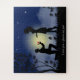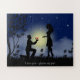 A couple is in silhouette against the night sky with a shining moon behind them and stars. The text, I love you - please say yes!, is easily personalised if you wish to change the wording.