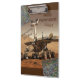 This clipboard showcases a visual representation of the "Robotic Autonomous Vehicle" deployed on the Mars Expedition, designed for surveying and collecting rock samples, as well as analysing the planet's elemental composition. Accompanying the central image are smaller graphics depicting coding syntax in the upper left and right corners. Additionally, the clipboard features two distinct typographies, prominently displaying the phrases "Mars Pathfinder Rover" and "Exploring the New."