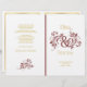 Marsala ampersand and scroll leaf floral wedding ceremony and party program featuring ampersand and flourish ornate scroll leaf in marsala colour and gold text. This elegant, modern yet classic wedding design with vintage elements is part of a wedding set or collection. It is a completely customisable template and is perfect for a formal or casual wedding. You will have to fold it in the centre. Choose only this type of paper-value as it folds well.