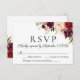 Let your guests RSVP to your wedding with our pink, burgundy, and wine flower response cards. The wording is completely customisable - if you need to change the font, font colour, size or the placement of the text boxes just click on the "Click to customise further" button to change those things. Be sure to check out our large selection of coordinating items by browsing the Marsala Floral Wedding collection!