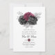 Elegant marsala, black and silver faux glitter flower wedding invitation with a whimsical dragonfly pattern reverse customisable to your event specifics.