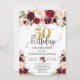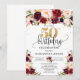 Marsala burgundy floral gold glitter 50th birthday invitation