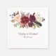 Marsala Burgundy White Roses Feathers Boho Napkin