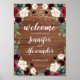 Marsala Burgundy Wood Floral Wedding Welcome Sign