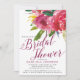 A bold and colourful bridal shower invitation featuring cascading watercolor floral bouquet of green leaves and flowers in marsala and red. Just underneath is "bridal shower" in marsala modern calligraphy style font. Details of the shower are in a mix of serif and sans serif font, and the reverse of the invitation is in solid marsala.