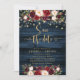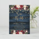 Our unique design features a rustic navy blue wood background and sparkling lights. The hand painted floral watercolor is a beautiful bouquet of red merlot burgundy and blush pink flowers. This elegant wedding invite with hand written script calligraphy will be sure to wow your guests!