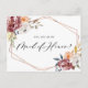 Will you be my maid of honour? Ask family and friends to be part of your wedding with this customisable bridal party proposal card. It features watercolor illustration of marsala, orange and white flowers with rose gold geometric frame. This floral bridesmaid proposal card is perfect for fall or autumn weddings. Matching items are available.