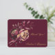 A breathtaking arrangement of deep, velvety red peonies, their lush petals creating a rich and dramatic display, accented with delicate gold leaves and shimmering tendrils. Among the blooms, two intertwined gold wedding rings are elegantly nestled, symbolising eternal love and unity. The bouquet’s natural stems are left bare, showcasing an organic yet sophisticated look. This combination of dark red and gold exudes timeless romance and opulence, making it a stunning choice for a wedding centerpiece or bouquet. Matching invitations and wedding party supplies are available in this collection suite