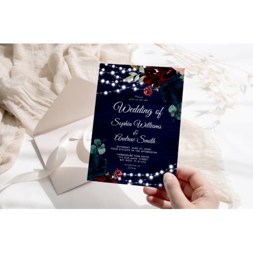 Or visit our Rustic Wood Marsala & Navy Blue Flowers Collection.
