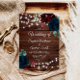 Marsala & Navy Flowers Rustic Wood Wedding Invitation