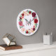 marsala pink red watercolor flowers monogram large clock