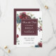 Artistically elegant watercolor floral blossoms in deep red marsala, burgundy and navy with eucalyptus branches and trailing greenery frame the edges of this distinctive wedding Save the Date card. A matching marsala square frame adds a lovely backdrop to the bride and groom's names. Personalise the easy to use text template with your details. The reverse side of this card is a solid marsala burgundy colour. You can add additional text on the back if you wish, such as your wedding website, or other desired text. You can also upload a personal photo (i.e. an engagement photo or other photo of the couple) to the back of the card if you wish to customise further.