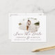Marsala Wine Red & White Romantic Brushed Frame with Photo Chic Save the Date Postcard. With luxury marble texture back, elegant calligraphy Script font plus slim line serif! Edit yours today with your names, date and photo!
