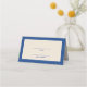 Create your own Marseille Bleu folded wedding place cards with or without lines for the name and table number and custom text on the back. Easy to personalise, these custom wedding escort cards are a bright shade of navy blue with a block of soft ecru on the front with optional lines for guest's names and table numbers. The back of each personalised wedding place card has white text where you can add the names of the bride and groom and the wedding date or a simple thank you message.