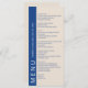 From the rehearsal dinner to the reception, these Marseille Bleu wedding menus will set the culinary stage for your celebration. A bold navy blue border on the side features white text and space for the bride and groom's names and the wedding date. The soft ecru background with dark blue modern style text highlights the wedding reception dinner menu in style. Easy to personalise, these custom wedding menus will add a little something extra to your reception or rehearsal dinner table décor.