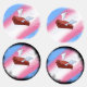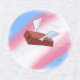 A background in the colours of the Transgender Flag, light blue, light pink, white, light pink, and light blue sketched diagonally from bottom left to top right. In the foreground, a red brick engraved M P. J, the initials of Trans woman and LGBTQ rights activist Marsha P. Johnson who is thought to have thrown the first brick of the stonewall protests. The image symbolises the integral and inextricable part that Trans people have played in the fight for equal rights. in the bottom right corner is the signature of the artist, Alex Leslie