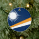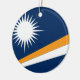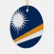 The Marshall Islands flag is a blue field with two stripes radiating from the lower hoist-side corner and on the left corner a shining star. The used colours in the flag are blue, white, orange. The proportion of the Marshall Islands flag is 10:19. The Flag of the Marshall Islands was adopted in 1979. The first use of the current flag design was in 1979. The last change to the current Marshall Islands flag design was in 1979.
