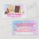 Super cute kawaii style baking, baker, bakery, candy or confections business card with marshmallow, chocolate bars, almond and peanut on a girlie pastel background. Smiling, happy sweets make a delish business card or DIY gift card for sweet homemade gifts.