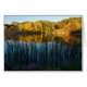 trees and pond of marthaler park during peak autumn season at daybreak with reflections on water in west saint paul minnesota