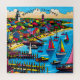 Colourful abstract ai art depicting a Martha's Vineyard beach with sailboats and lighthouses. Cute keepsake souvenir for anyone who loves Martha's Vineyard.