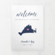 Planning a destination wedding, or expecting lots of out of town guests? Share a welcome message for your Martha's Vineyard wedding guests as well as an itinerary or schedule of the weekend's events. Front features a navy blue silhouette map of the island of Martha's Vineyard with a pink heart inside. (You can customise the colour of the state and the position of the heart within the design tool!) Personalise the inside with a personal welcome message and a detailed schedule of events or wedding weekend itinerary. Perfect for including in hotel welcome bags or delivering to your guests' rooms.