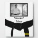 A personalised Martial Arts Second Degree Black Belt Plaque makes a great gift for a black belt promotion test, birthday or holiday for your martial artist. Customise it with the name of your athlete, year they joined the black belt club and a personal picture. This custom 2nd Degree Black Belt Photo Sports Plaque features a digitally enhanced photograph of an actual black belt with two gold bars added. Suitable for all martial arts including karate, taekwondo, kung fu, judo or ju jitsu.