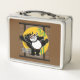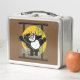 This is a standard metal lunchbox that appears to work just fine. We designed this box ourselves with an uploaded photo and custom text on the front and back. It looks absolutely beautiful except the front of the lunchbox is not centered like it shows in the photo. The print borders don't align with the inset flat part of the box where the preview photo online showed it perfectly centered in there. The back looks nice and centered though.