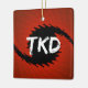 Personalise the Martial Arts TKD Hurricane Ornament with the name of your martial artist and current year to create a unique gift idea for a belt rank promotion test or exam. This one of a kind custom martial arts sports ornament features an abstract red and black fractal art background with the letters TKD in white.