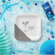 A sophisticated design for celebrating a 60th birthday with a cocktail party, dinner party, or all-out birthday bash with this chic stylish martini birthday party bar design can be personalise for any age. Along with the martini and olives graphic, a corner swash of thin black and white stripes add an extra touch of class to the design and coordinate with the matching party invitation that repeats this stripes pattern on the back of the invitation. These paper plates are available in 2 sizes: shown here in the smaller 7-inch diameter size, you can also order them in a 9-inch diameter size.