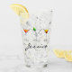 Ideal for a one-of-a-kind gift, this glass tumbler design features an original illustration of a row of classic martini, manhattan and cosmopolitan mixed drink cocktails. Just personalise with your information.