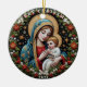 Crafted with meticulous detail, this ornament radiates the serene and timeless beauty of the nativity scene, capturing the tender moment between mother and child. The intricate embroidery-style design evokes a sense of reverence and grace, making it a meaningful addition to your holiday décor.