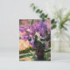 Mary Cassatt Lilacs postcard. Oil painting on canvas from 1880. American artist Mary Cassatt was one of the great female impressionist painters. Lilacs in a Window is a beautiful and simple painting featuring a bunch of freshly cut lilacs in a purple vase sitting on a windowsill. The lilacs are both purple and white and their foliage is still dark green. A beautiful gift for fans of Mary Cassatt, impressionism, lilac paintings, and American women painters.